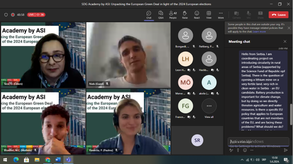 Учесници су коментарисали предстојеће изборе за Европски Парламент, те промене у ставовима појединих политичара Европске уније, што може да угрози имплементацију Зелене Агенде.
